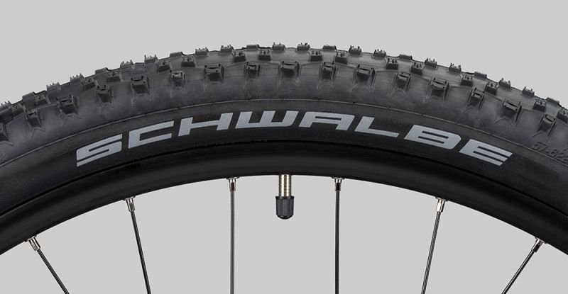 | Reifen vorne: | Schwalbe Tough Tom, wired, 27.5″ x 2.25″ / 29″ x 2.25″ |